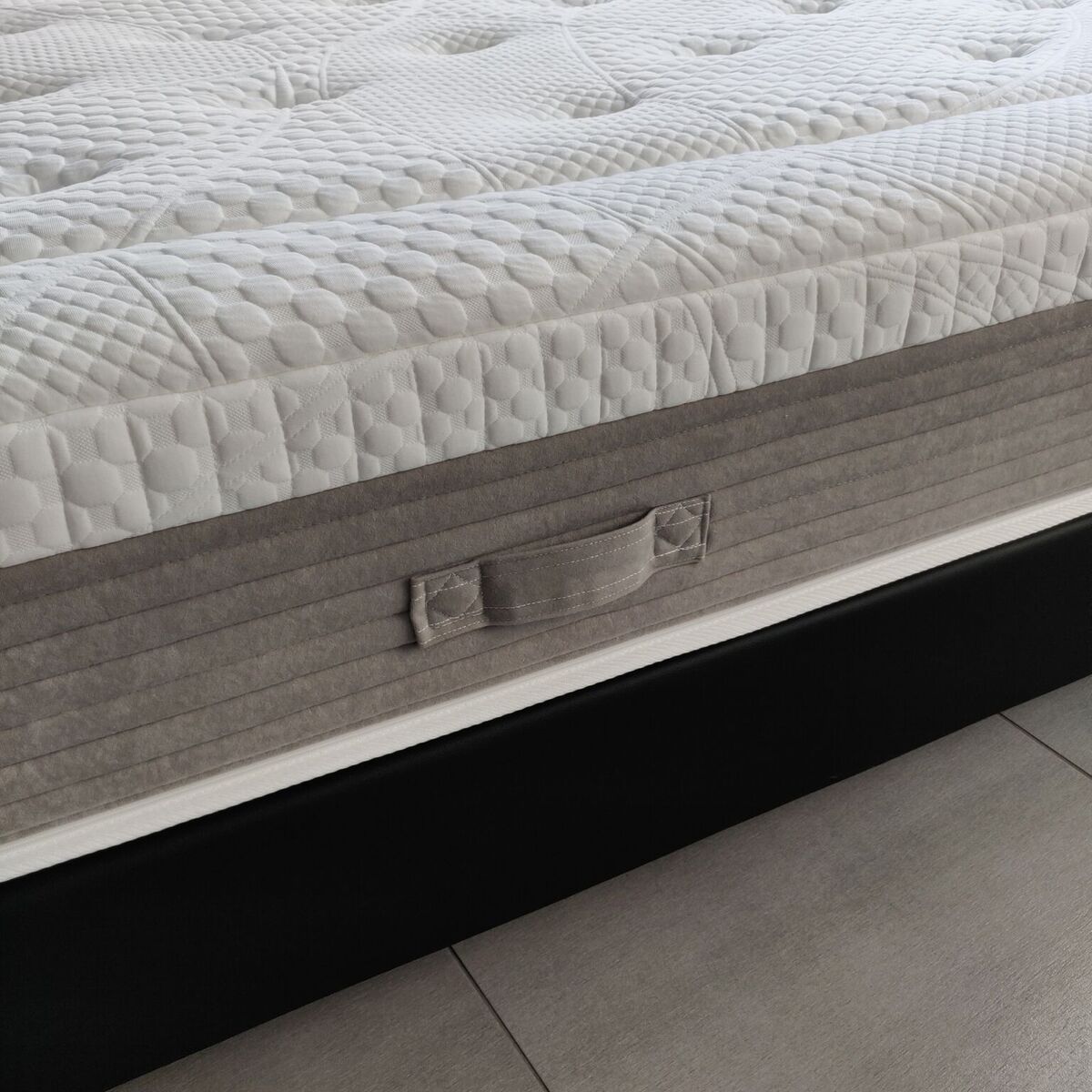 Premium madrac poput Wollbett Infinity modela – koji kombinira HR30 pjenu (19 cm), SoftAir HR pjenu (3 cm) i ViscoMind memory pjenu (3 cm) ukupne visine oko 28-30 cm – ne može pokazati punu funkcionalnost na nestabilnom ili loše konstruiranom okviru. Jezgra od HR pjene koja ravnomjerno raspoređuje pritisak tjelesne težine funkcionira ispravno samo kad leži na ravnoj, krutoj podlozi. Ako se okvir savija u sredini, madrac preuzima deformaciju i počinje se nejednoliko habati – ubrzavajući gubitak elastičnosti na mjestima najvećeg opterećenja.