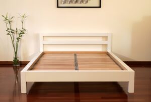 Debljina elemenata ključna je za krutost. Bočne stranice tanje od 4-5 cm podložne su savijanju pri većim opterećenjima. Kod masivnih krevetwa od punog drveta debljina stranica iznosi 7 cm – to je solidna, pouzdana mjera koja eliminira fleksibilnost okvira. Nosači podnica postavljeni su cijelom dužinom stranica.